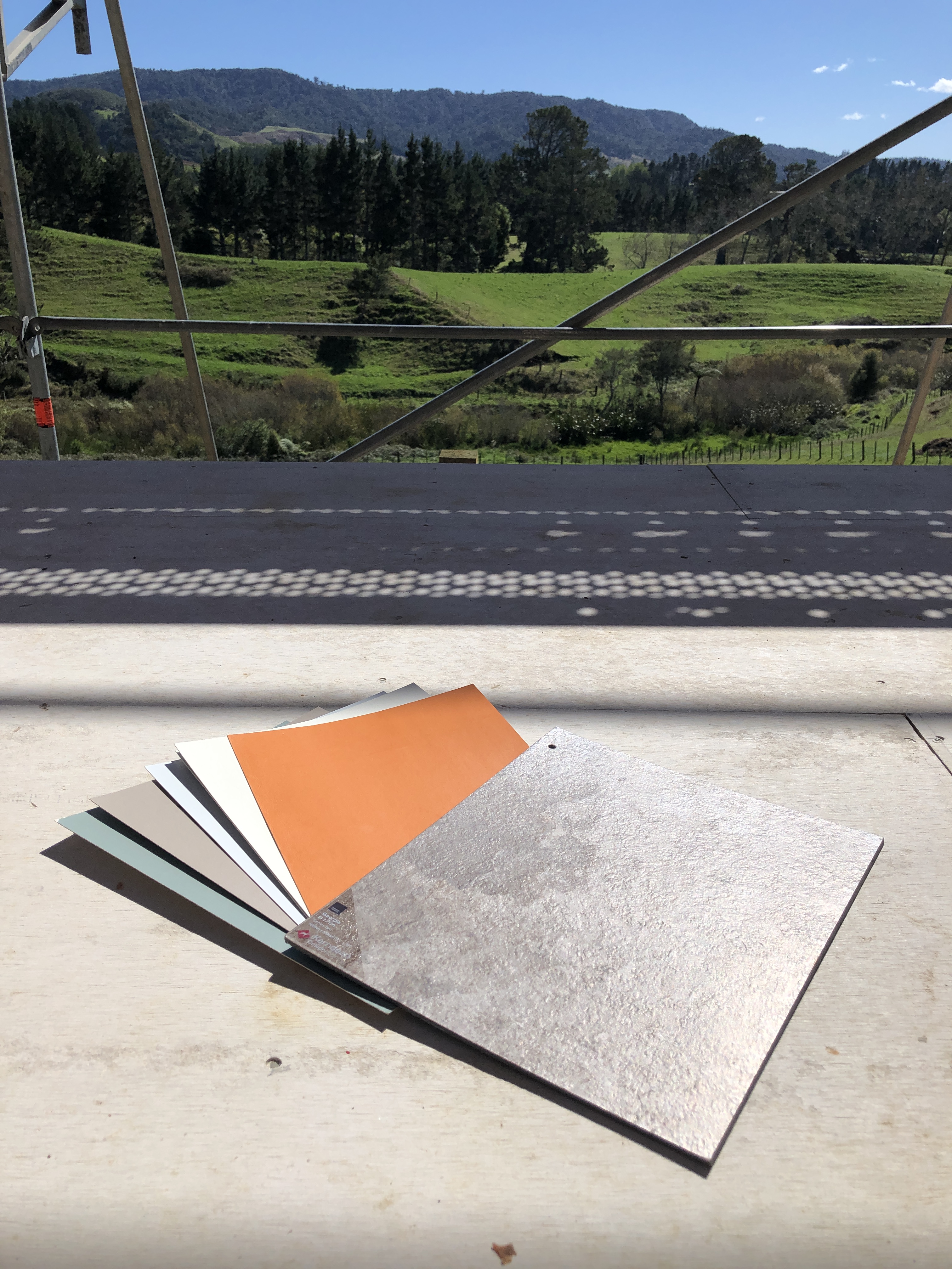 It’s crunch time. Our little Napkin House is shooting up and we’re only a couple of months from being finished. Which means all those little decisions we’ve been putting off now have to be made. And quickly. Wall colours, wallpaper choices, bathroom tiles, carpet, exterior colours, the size of Florence’s cat flap… the list seems endless. So for the final choices, we took our bag of samples up to the site and got the job done, getting us ready and organised for the final stretch. Apart from the lights… and the toilet. Oh, and the doors…