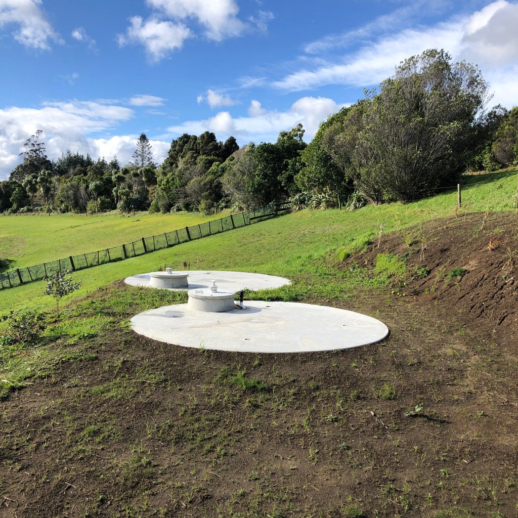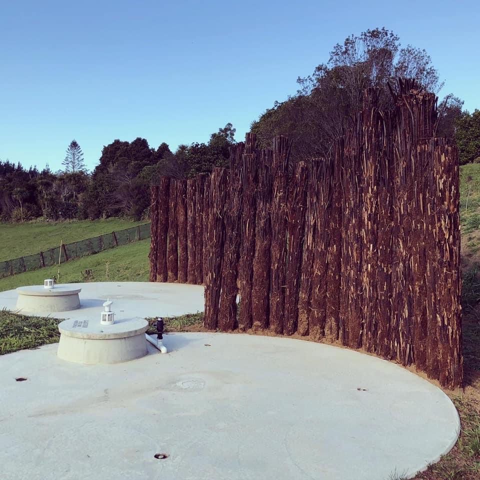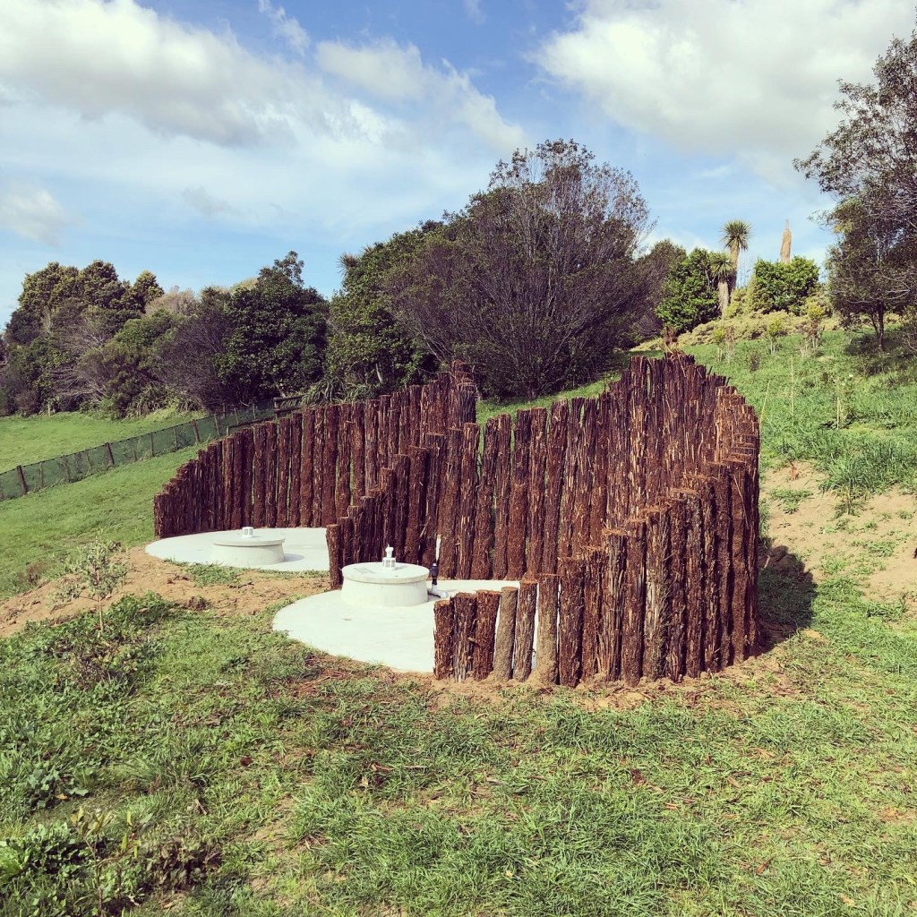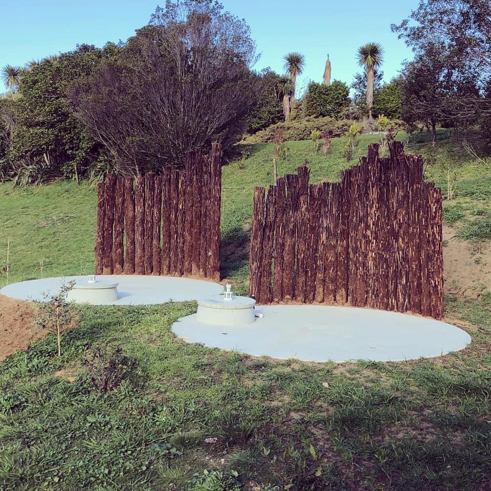 So there we go. All that’s left to add is some corten steel structures we’ve had commissioned in Auckland to cover the tank lids (delayed, along with everything else this year). And our little living fence is already sprouting growth. Or horns…